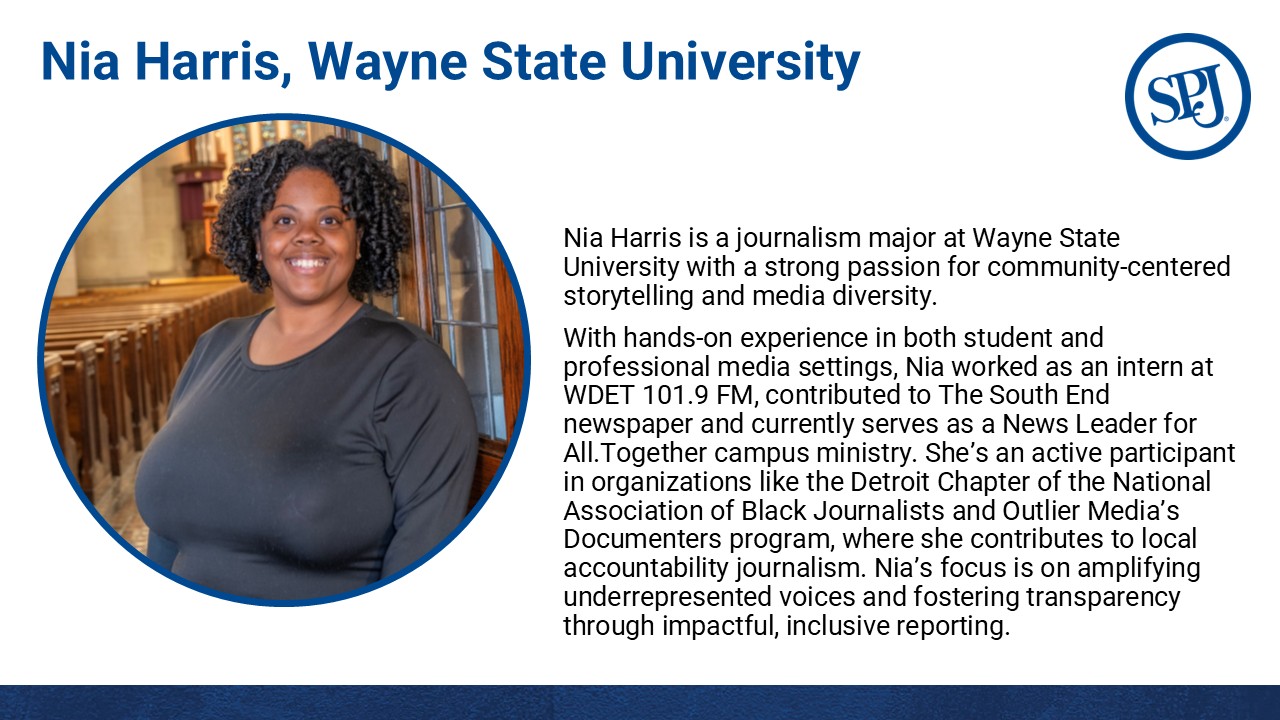 SPJ Detroit annually awards grants up to $2,500 to Michigan residents who are or will be a sophomore, junior or senior at a college or university with a demonstrated interest in journalism attending a college or university. This award may be used at any institution of higher education.